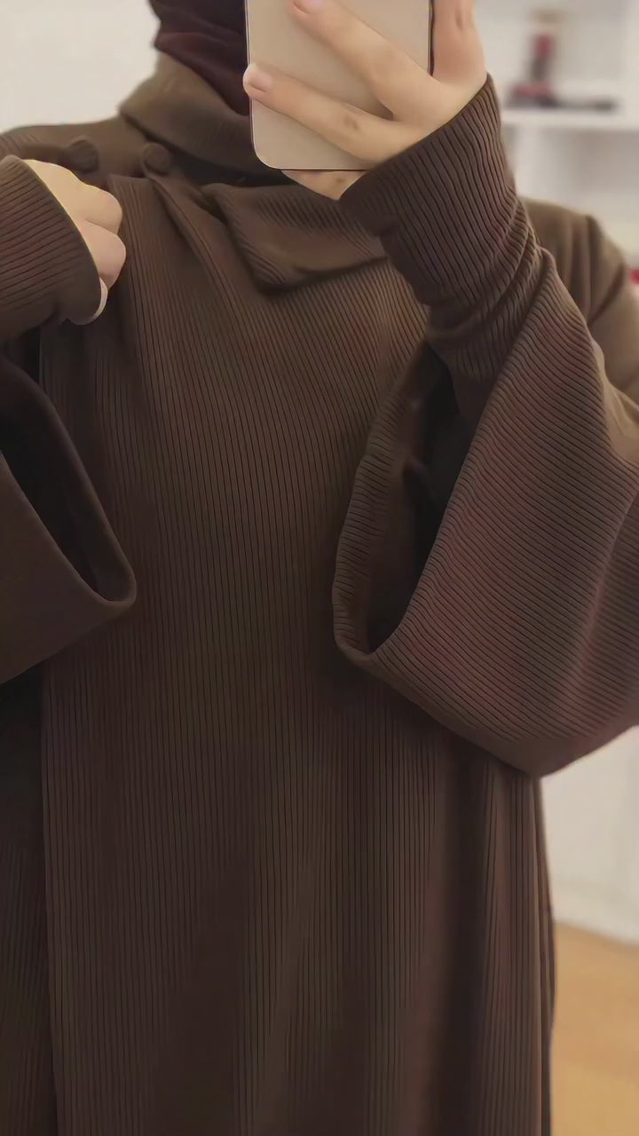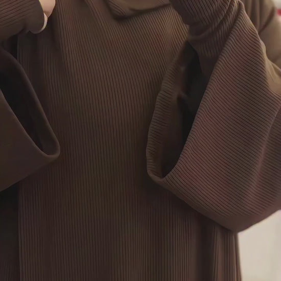 Experience warmth, elegance, and comfort with our Yasmeen dress, crafted from premium ribbed knitted fabric that is soft, durable, and beautifully draped. This design offers a relaxed yet stylish fit with a waist belt, perfect for effortless modest fashion.