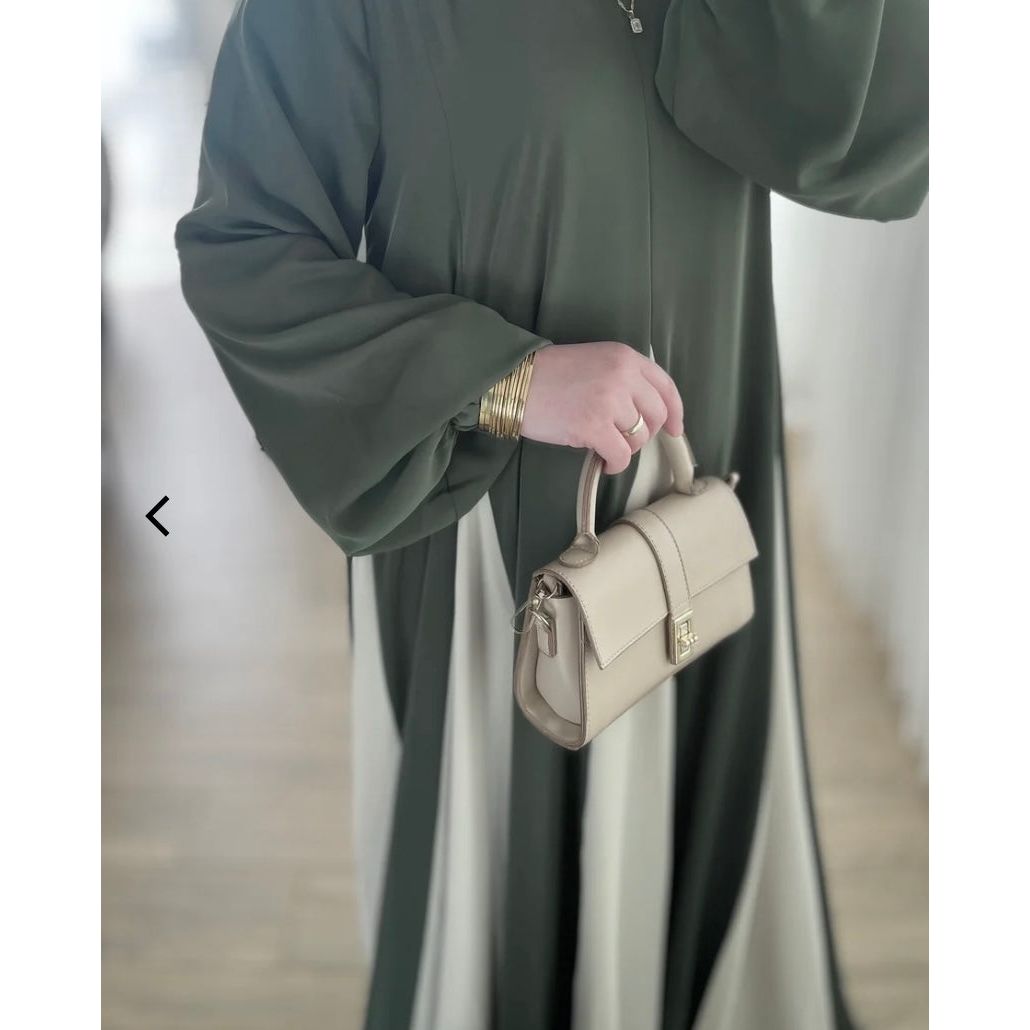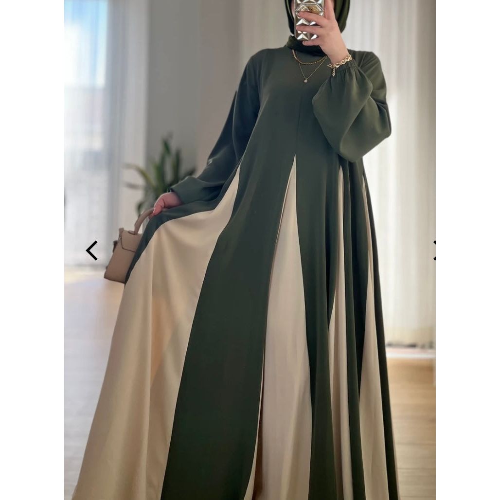 Experience effortless elegance with the Amal Flow Dress, beautifully crafted from premium Dubai silk for a soft, luxurious touch. Featuring a graceful A-line Mevlana silhouette and striking contrast panels, this dress flows with every step—creating a flattering, elongating effect. A timeless blend of modesty and modern sophistication.