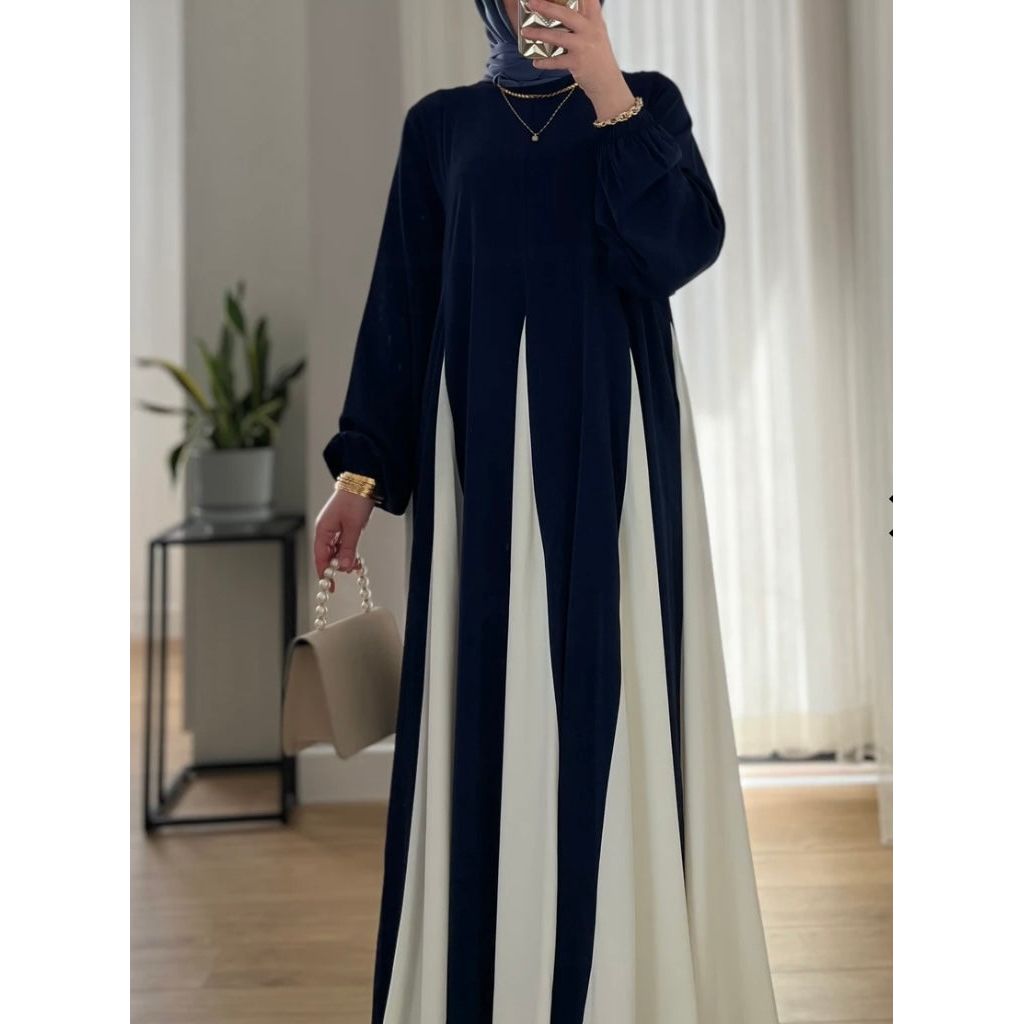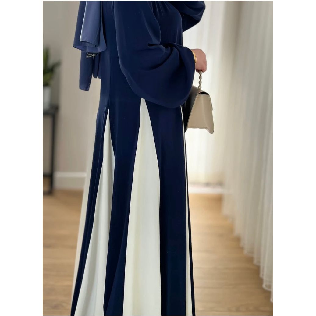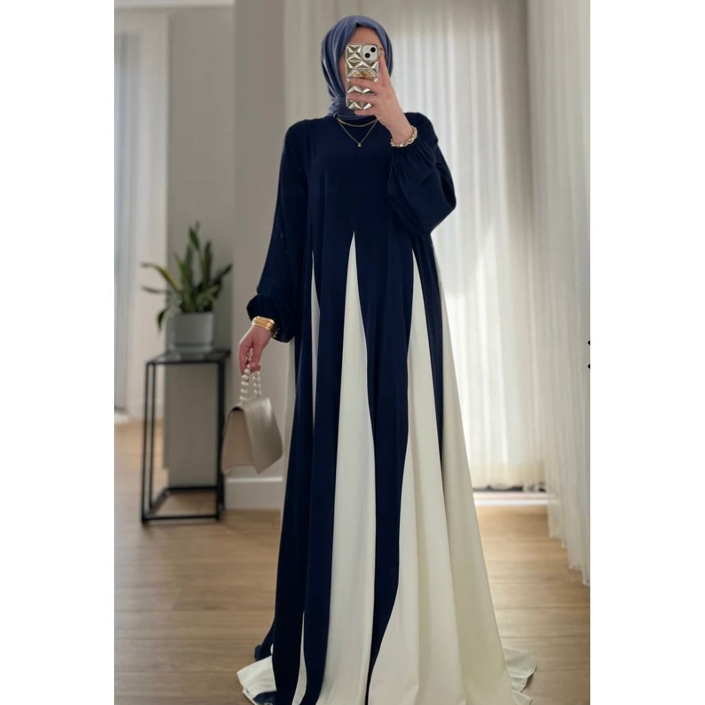 Experience effortless elegance with the Amal Flow Dress, beautifully crafted from premium Dubai silk for a soft, luxurious touch. Featuring a graceful A-line Mevlana silhouette and striking contrast panels, this dress flows with every step—creating a flattering, elongating effect. A timeless blend of modesty and modern sophistication.